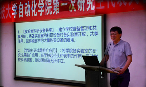大会听取了《自动化学院第一次研究生代表大会提案工作报告》,经过大会筹备委员会对提案的广泛征集,本次大会共收到80份有效提案,揽括了学校改革发展、教育管理、学风校园及校园文化、生活与后勤等多个方面。筹备委员会经过整理合并后将问题提交到研代会现场,会上沈安文和朱平对学生们关心的学院教学发展类和学工管理类提案进行现场回复。生活后勤类的提案筹委会经过整理后发到校研究生会权益部进行回复。