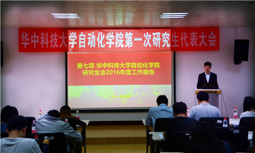 大会在雄壮的国歌声中拉开帷幕,朱平代表院党委致辞,他肯定了院研究生会在以往工作中取得的各项成就,并对2017年研究生工作以及研究生们寄予殷切期望。研究生会主席程文祥在会上做了《自动化学院研究生会2016年度工作报告》。