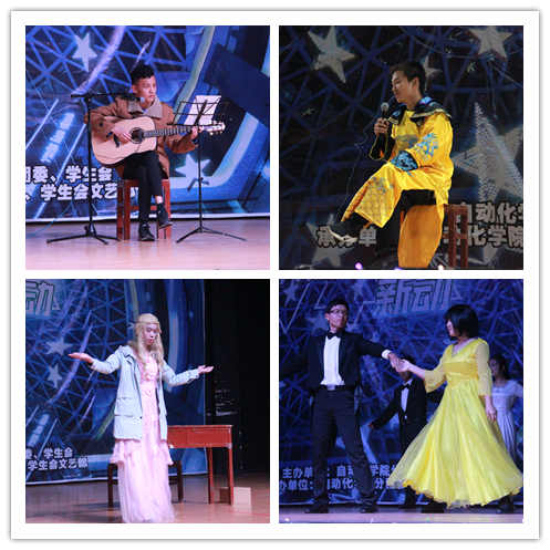 文艺部同学以一支精彩的舞蹈《as if your last》拉开了本次晚会的序幕。精彩的节目接踵而来,排练多时的同学们粉墨登场,抑扬顿挫的诗朗诵《如果》,嗨爆全场的炫酷街舞《overdose》,洋溢着爱国热情的大合唱《精忠报国》以及有趣的小品、话剧、吉他演奏和萨克斯小提琴合奏等,都赢得了观众的掌声与尖叫。最令人期待的的走秀表演更是以出人意料的反串,精致的服装和从容的台步,将晚会气氛推向高潮,观众们情不自禁地挥舞着手中的荧光棒。节目中间拼手速拼人品的拨打电话抽奖环节让观众们紧张而兴奋,幸运儿们的笑脸为晚会增添了几分欢乐。贯穿全场的微信墙实力抢镜,同学们争先恐后地“上墙”表达自己内心的喜悦并为表演者们加油鼓劲。