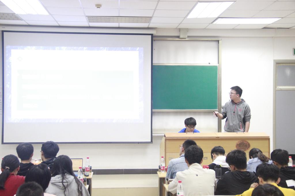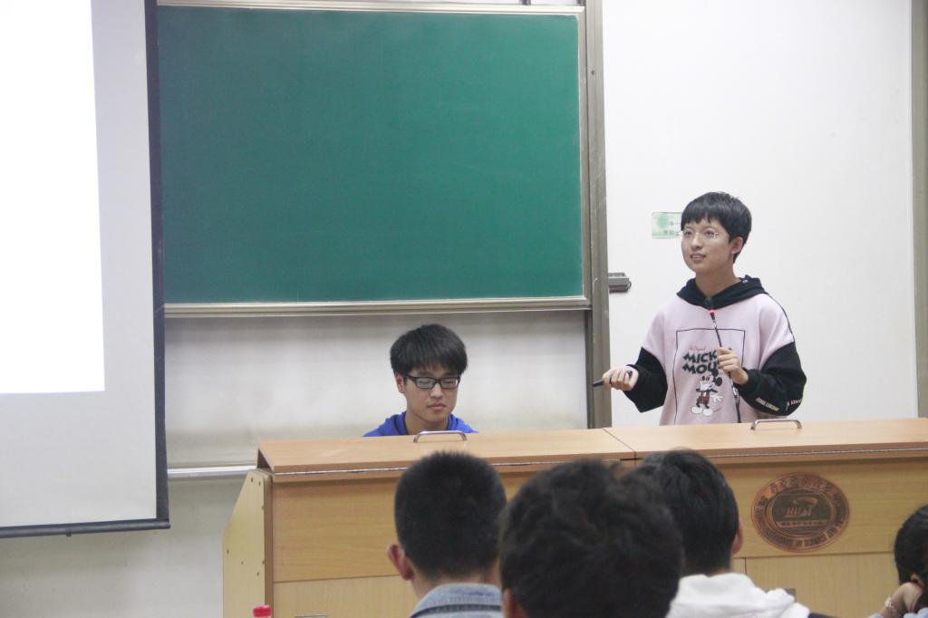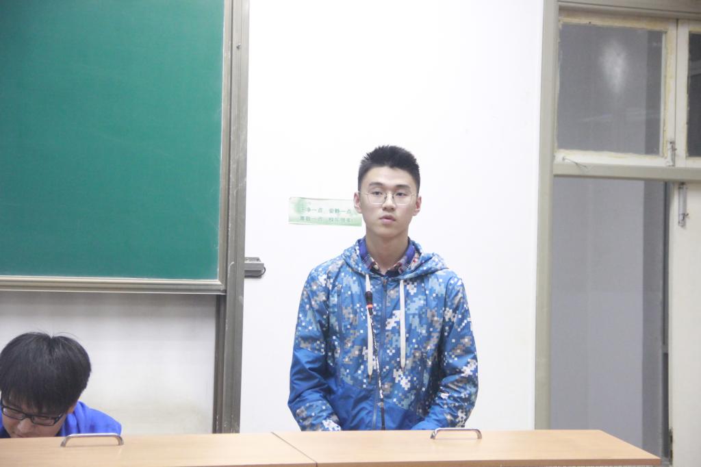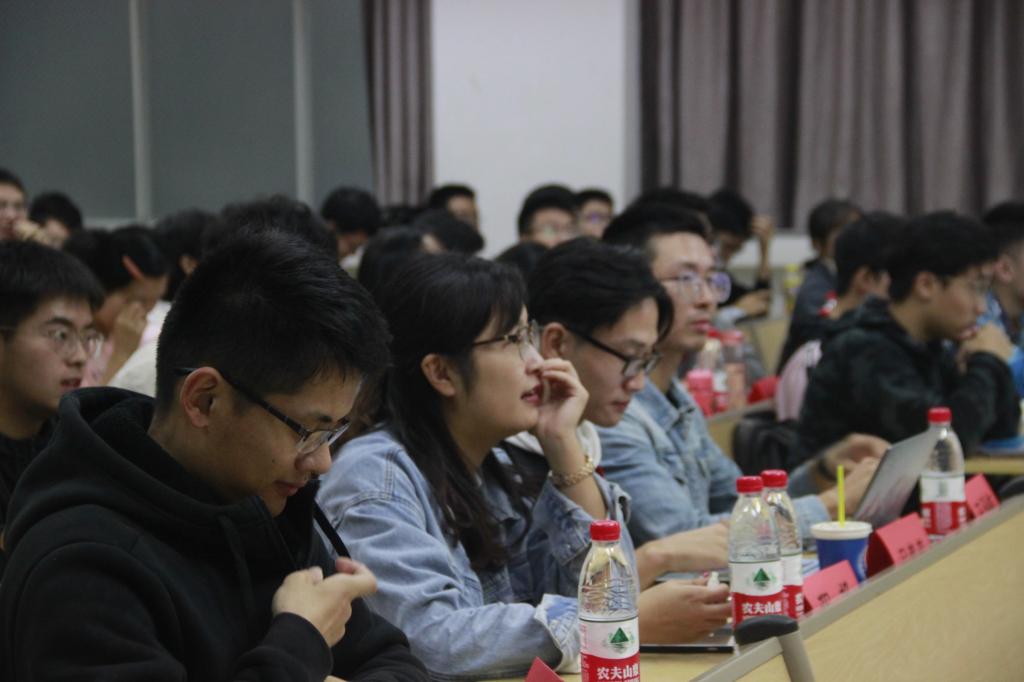 王泽楠首先为活动致辞。他对参加活动的八位国奖获得者表示祝贺,并代表19级新生对他们分享自己学习经验与方法表示感谢。同时他也对19级新生提出了要求:要积极学习优秀的经验,并学以致用,找到适合自己的方式;而在自己取得优异成绩时,也要乐于分享,发扬学院一直以来团结互助的优良传统。