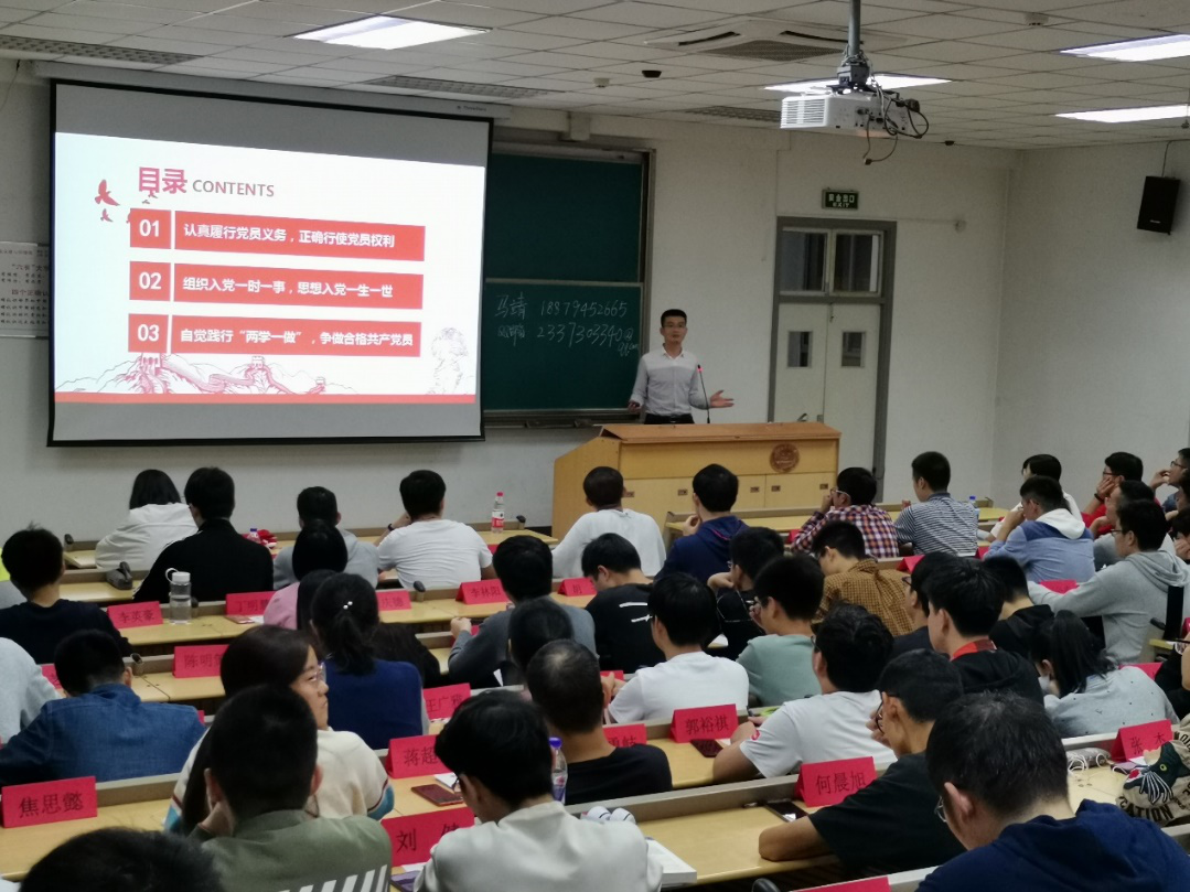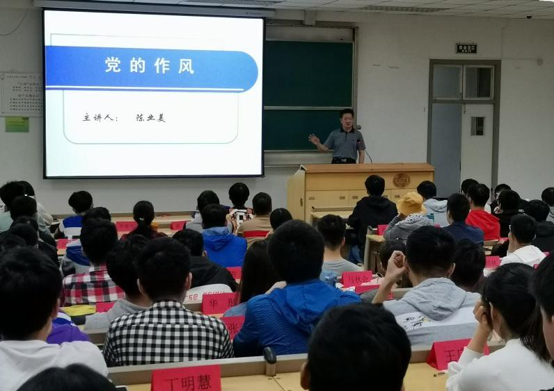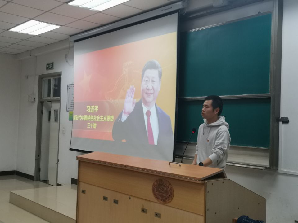 第一讲由校党委组织部的王腾飞老师向预备党员们讲授“习近平新时代中国特色社会主义思想” ,他让学员们思考当今中国应该发展怎样的中国特色社会主义,在这其中作为新青年党员能够做什么。