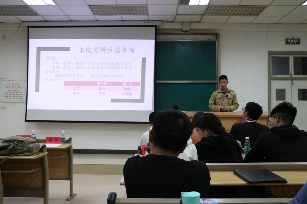 考研外校是一条孤独而艰难的路,考取中科院自动化所的田若辰作为这条路上的成功者,详细说明了报考外校的各个事项。他认为信息的收集对于报考外校最为重要。不同地区的学校有不同的情况,除看学校的官网外,还需要多方了解情况;考取清华大学自动化系的单文俊向同学们介绍了自己备考时各个科目的资料和复习时间,他认为考研的整个备考过程需要一步一个脚印走好,强调“走出宿舍是成功的第一步”。