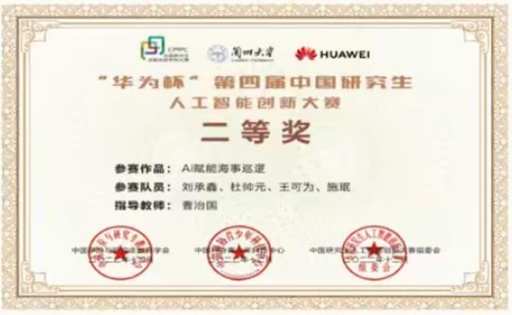 (通讯员 刘承鑫)2022年12月11日,“华为杯”第四届中国研究生人工智能创新大赛决赛在兰州大学落下帷幕,beat365唯一官网参赛作品“AI赋能海事巡逻”从全国高校1217支参赛项目中脱颖而出,获得大赛二等奖,曹治国教授获得大赛优秀指导教师奖,我校获得大赛优秀组织奖;电信学院参赛项目“儿童体育动作智能评估系统”获得三等奖。