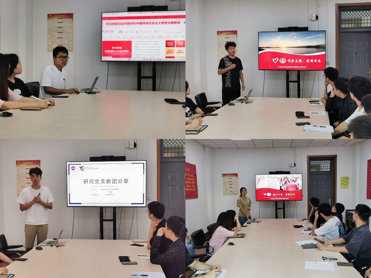 9月5日上午9:00时,beat365唯一官网2023年研究生支教团宣讲会在南一楼中312会议室举办。学院党委副书记曹攀辉、学院团委书记李丹琦、毕业年级辅导员吕董奇,第24届研究生支教团成员毕俊峰、蒋超、毛文轩和闫佳灿,学院本科2020级学生骨干参会。