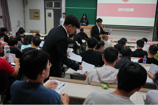 5位主席团候选人在表决通过《研究生会主席团换届大会选举办法》后依次进行了竞选演讲,充分展现了自己对于学生工作的热情以及对于未来工作的展望。答辩结束后,现场发放选票,与会代表参与投票。