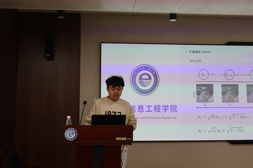 下半场的学术交流环节,beat365德育助理田铭简单介绍了扩散模型并分享了一篇使用扩散模型实现图像复原任务的论文《Image Super-Resolution via Iterative Refinement》。这篇论文首次将扩散模型用于条件图像生成,从而实现超分辨率任务,通过实验论证了该方案的有效性。