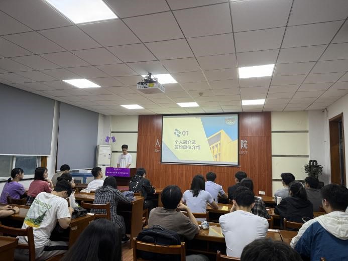 随后签约湖北航天技术研究院总体设计所的王智敏从“简历制作与投递”、“研究所招聘流程”两方面分享自身经验。他分享了自己投递研究所的招聘流程和面试方式,强调要关注各个研究所的投递开始时间和招聘渠道,建议同学们提前准备面试中可能遇到的问题,同时也建议同学们在选择就业岗位时需要考虑清楚自己的需求,多多尝试,不要把赌注压在一条赛道上。