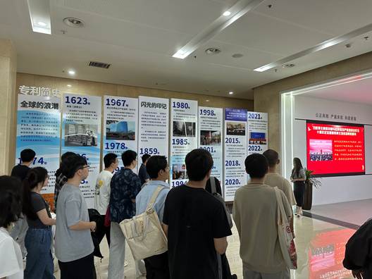 在湖北中心的展厅,讲解员从建设历程、人才培养、党建工作等多个维度展示了湖北中心的发展成就,同学们深入了解了专利分类、专利审查体系等知识,并在讲解员的带领下参观了湖北中心的园区和活动室。