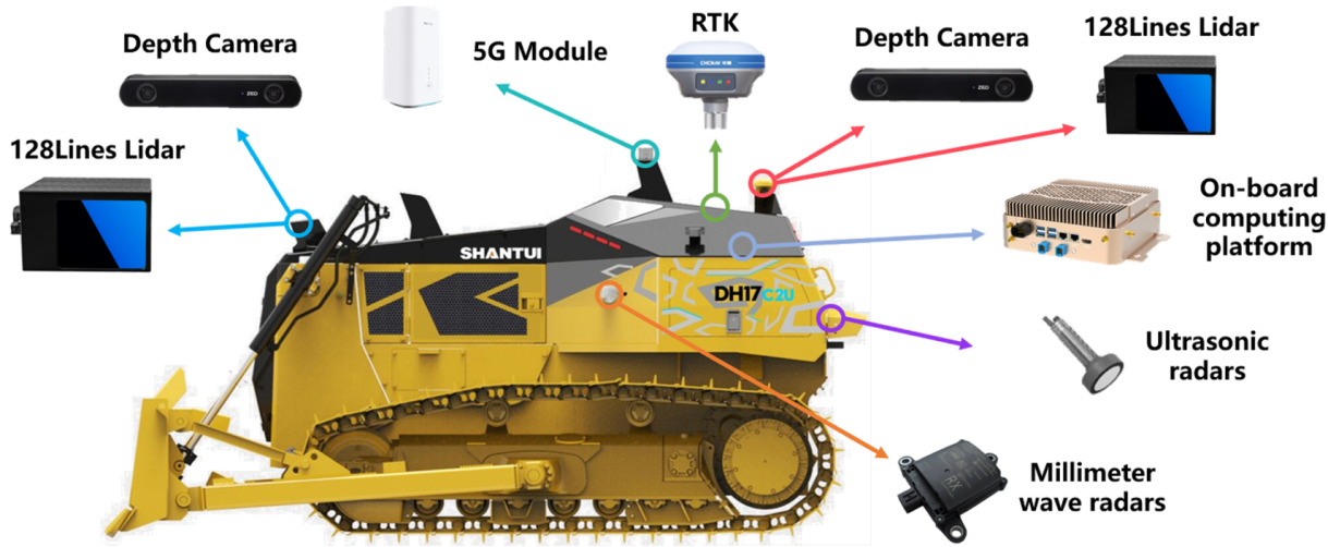 在近日召开的山推AI战略发布会上,山推工程机械股份有限公司发布了施工场景L4级工程机械自动驾驶系统。在beat365与自主智能无人系统教育部工程研究中心的支持下,由彭刚、孙志刚、肖力等老师和研究生组成的团队,经过多年的研制和迭代优化,在多模态融合感知、定位与建图、施工路径规划、安全保障等方面取得了应用突破,让工程机械拥有了“思考”和“执行”力。