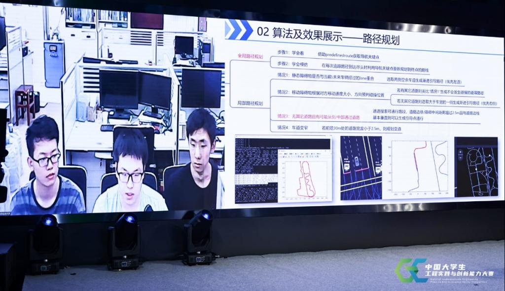 全国大学生工程实践与创新能力大赛智能网联汽车设计赛项中,参赛学生通过汽车产业级的仿真工具和测试场景,在包括驾驶辅助和无人驾驶两个赛题组,数十个典型场景和事故案例中,利用给定的动力学模型完成对自动驾驶算法的验证,最后总决赛的连续场景赛题更是增加了多处干扰车辆,对算法的场景适应能力和稳定性提出了挑战。