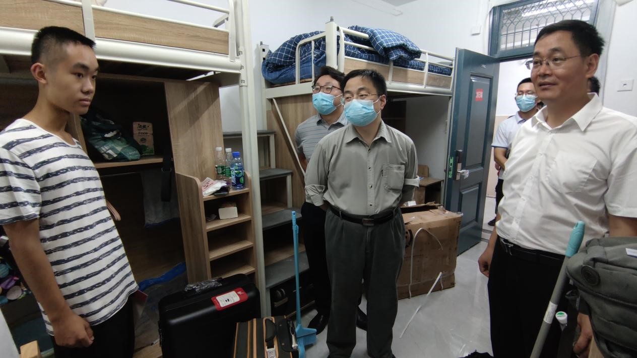 晚间,院党委书记耿远明、院长曾志刚、院党委副书记朱平、全体教师班主任、研究生班主任以及学工组的辅导员们,一同走访了本科生新生宿舍,看望每一位新同学。学院领导与新生亲切交谈,慰问了在校适应情况,了解新生基本信息,勉励大家尽早作出大学规划,不负四年青春。