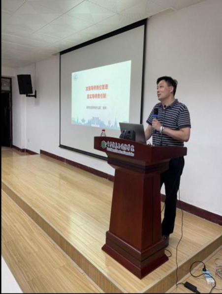 潘林强作总结讲话,他代表学院感谢了各位特邀讲座老师;希望导师认真消化讲座内容,把研究生培养工作和自我修养提升结合起来,新进教师要炼好基本功,不断提升自己的业务水平,导师要不忘育人初心,始终以德立身、以德立学、以德施教;全院统一思想,提高认识,努力打造一支师德高尚、业务精湛、爱岗敬业的研究生导师队伍!
