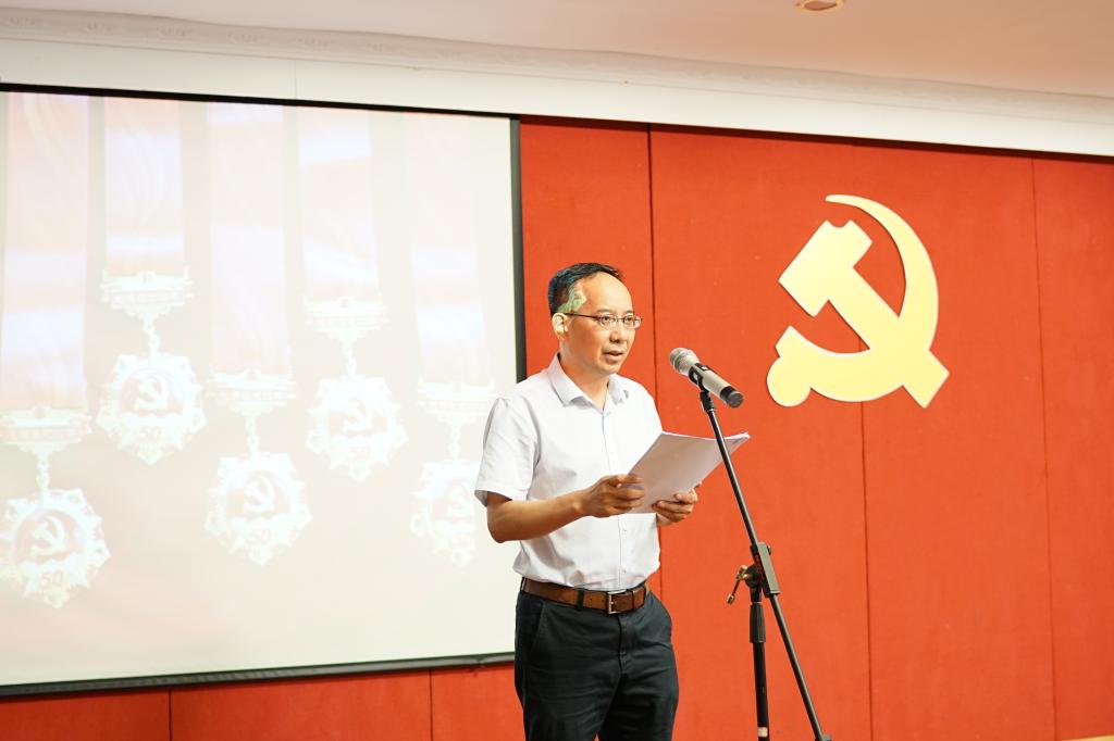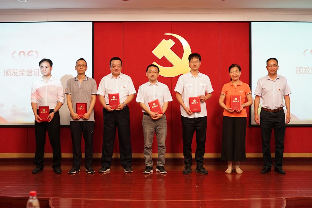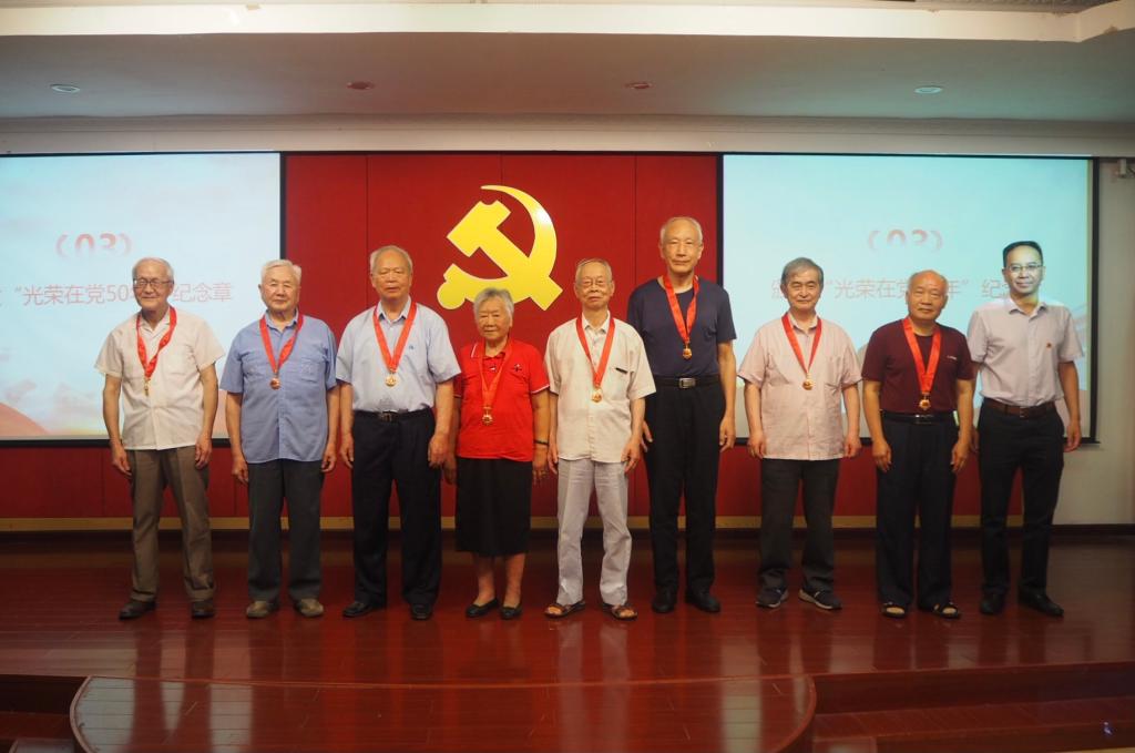 学院党委委员向7位党龄超过50年的老党员颁发了“光荣在党50年”纪念章,向受表彰的党员和党支部颁发了荣誉证书。学院领导班子为受表彰的先进个人颁发了荣誉证书。