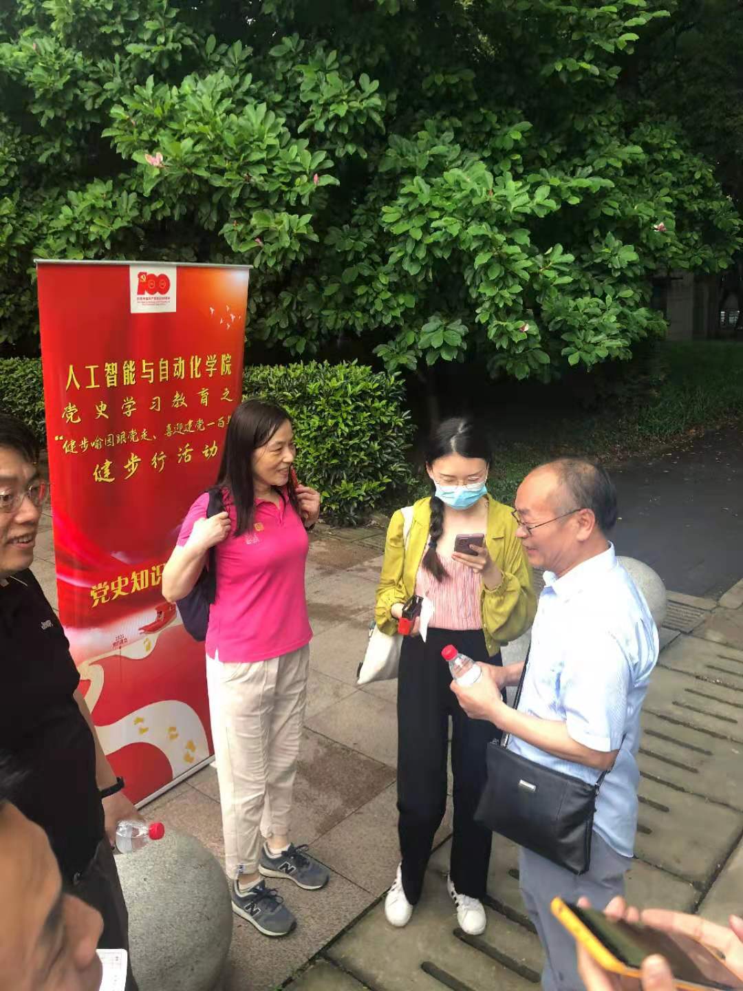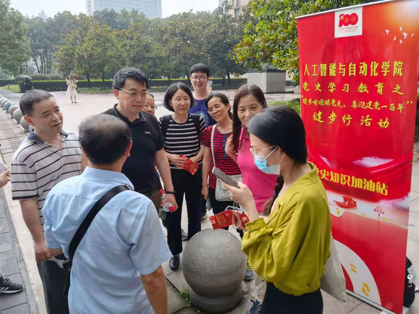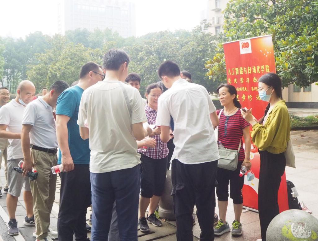 活动开始前的一场暴雨带走了高温,送来了清爽,参与活动的师生三五成群,一路欢歌笑语;各党史知识加油站上,师生们积极参与党史知识问答,顺利完成问答的赞叹声此起彼伏;雨后的喻园记录下了师生们的欢声笑语。经过一个小时的健步行,师生们纷纷完成打卡回到终点,并领取了学院精心准备的小礼物。