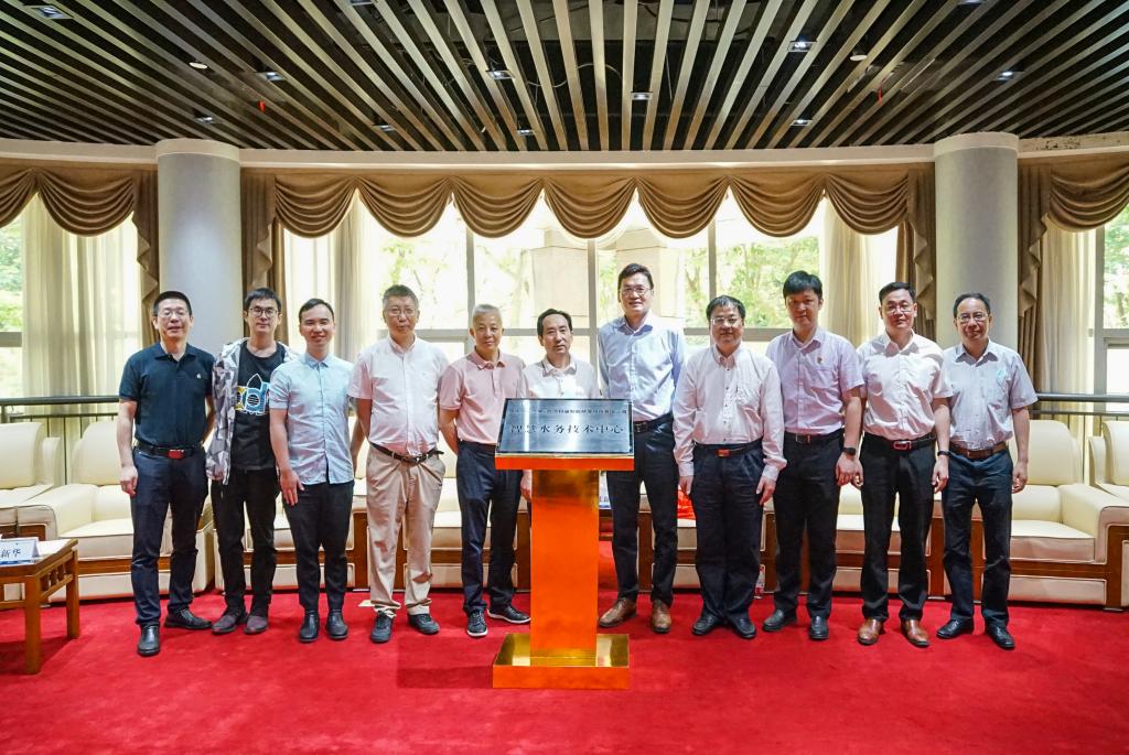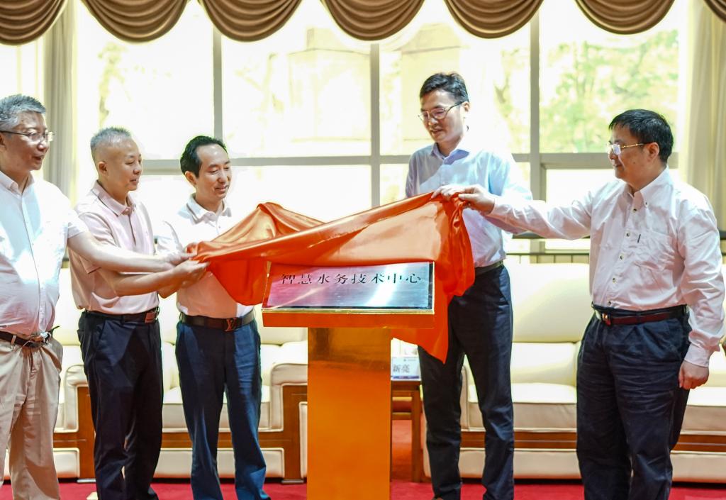 张新亮和黄艳林共同为智慧水务技术中心揭牌。