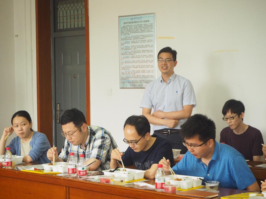 院长曾志刚首先代表学院再次欢迎了青年教师们的加入,希望老师们作为国际化的高水平人才,能志存高远,贯彻“四个面向”,以国际化的视野,拓宽研究方向,取得更卓越的优秀成果;学院党委书记耿远明欢迎广大青年才俊加入学院大家庭,对大家提出了坚守学术诚信、强化师德师风的要求,希望青年教师们创新开展育人工作,共筑学院三全育人的大系统。学院班子成员张海涛、钟胜、朱平,工会主席谭毅华也结合自身工作和个人经历与青年教师们热烈交流。耿远明、曾志刚还代表学院向今年新婚的青年教师陆昊送上了祝福。