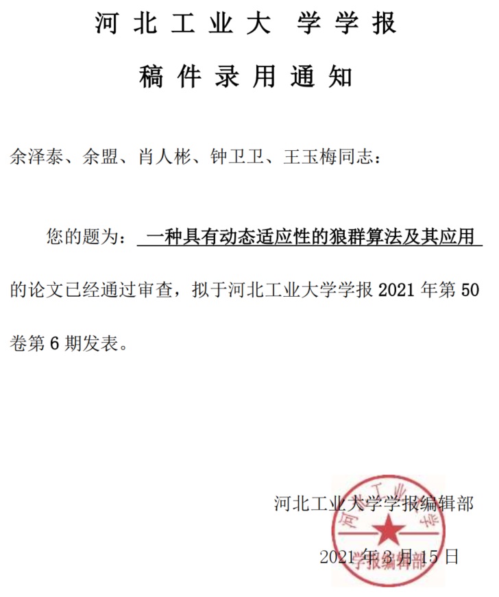 群体智能(简称群智能)是我国“新一代人工智能”发展规划的主攻方向之一,旨在通过群智涌现的大成智慧来解决现实世界中的各种复杂问题,群智能优化算法是其中的重要研究内容。我国学者吴虎胜在肖人彬教授指导下,提出了一种具有角色分工机制的原创性群智能优化算法——狼群算法,在复杂问题的优化求解方面显示出优良的性能。肖人彬教授以此为契机,带领本科生开展了为期一年的研讨活动。该研讨活动面向装船排箱优化调度问题和无人机反恐作战的路径规划问题,对狼群算法进行定制化改进,提出了新颖的交互感知狼群算法和具有动态适应性的狼群算法,不仅在理论上有重要的学术创新,而且有效地解决了实际问题,取得丰硕成果。据此撰写的学术论文相继被多所大学学报录用,计划年内刊登。