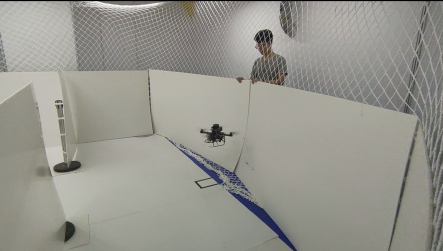深夜时刻参赛队员在自己搭建好的场地上调试无人机
