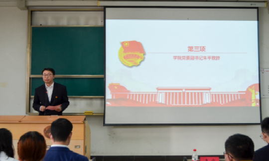 学院党委副书记朱平代表学院党委致辞,他指出学院共青团工作收获的荣誉和成果与校团委的指导支持、兄弟院系的帮助和全院团员青年的努力奋斗密不可分。他表示,学院团委要继续推进“团旗向党”行动,勇于开拓创新,努力开创共青团工作新局面;全院团员干部要牢记责任使命,提升素质能力,更好地服务全院青年成长成才;广大青年要树立远大理想,勇担时代重任,为“卓越华中大”建设、为中华民族伟大复兴贡献青春力量。