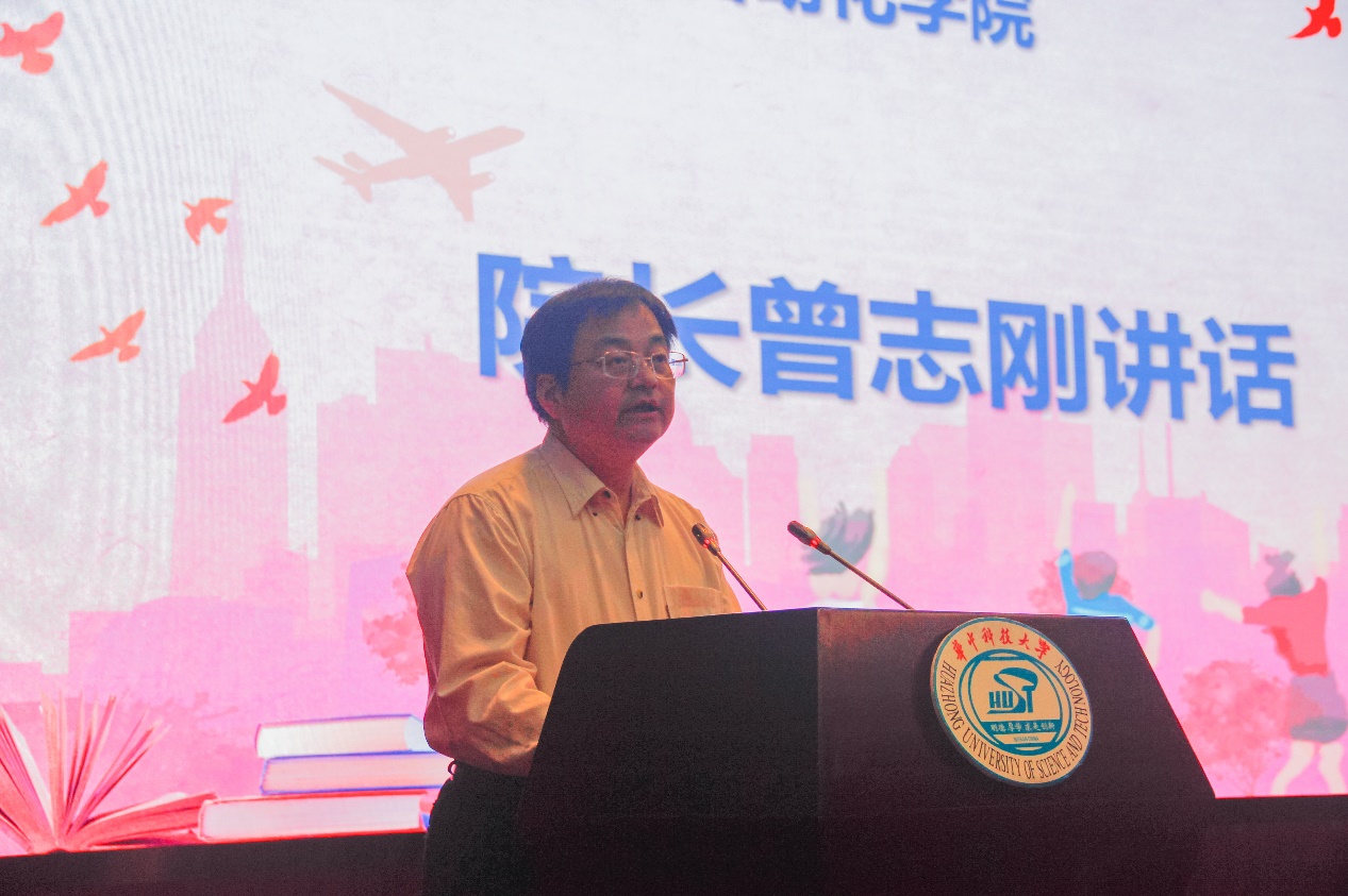 学院院长曾志刚对新生表示欢迎与祝贺,并对大家提出了三点期望:一是不要在最需要吃苦的时候选择安逸,要始终把学习作为第一要务,鼓足干劲,力争上游;二是不要等待机会,而要创造机会,利用好自身的优势,追随科技井喷式发展的步伐,赶上人工智能发展的时代潮流;三是只有千锤百炼,才能成为好钢,要坚韧不拔、不惧失败,用更大的信心、更专业的知识迎接未来的挑战。