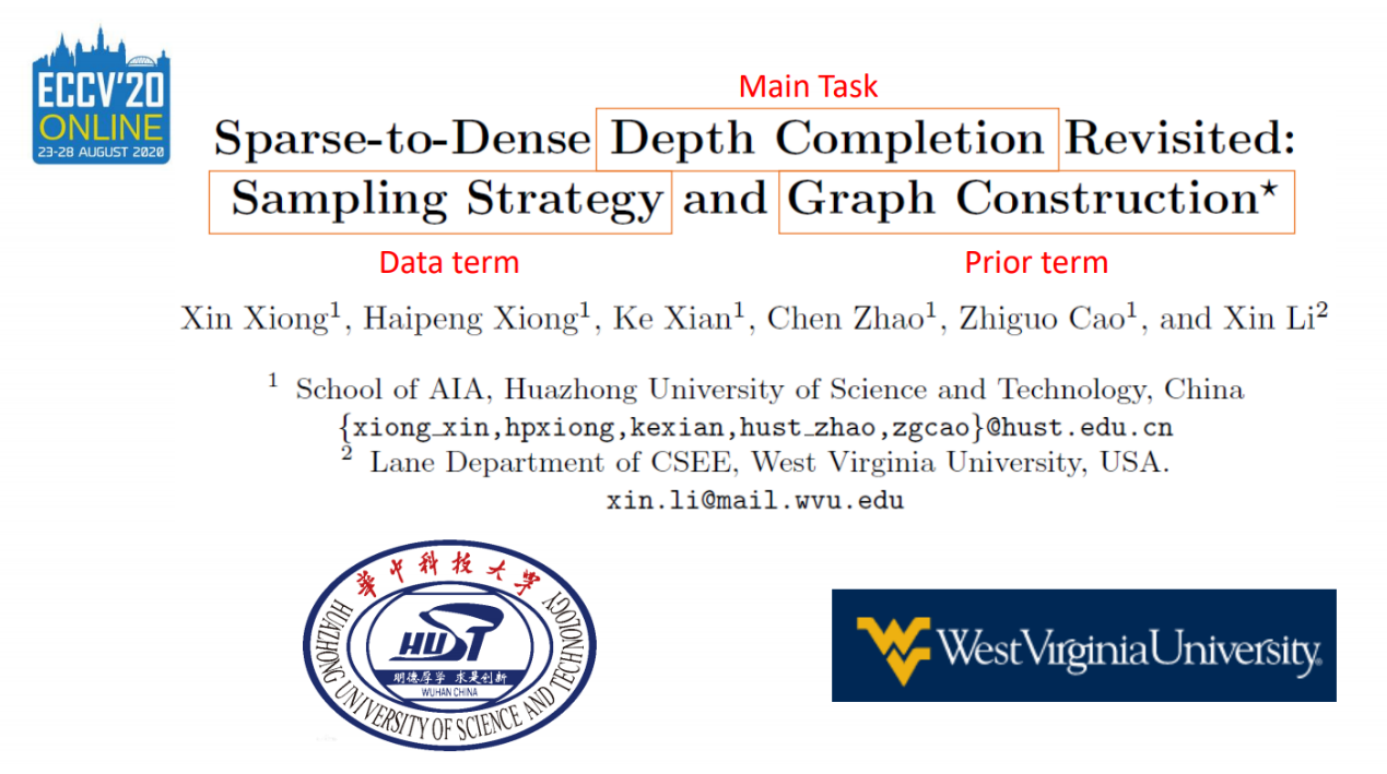 硕士研究生熊昕、熊海朋等同学在曹治国教授的指导下,与美国西弗吉尼亚大学李欣教授(IEEE Fellow)合作,发表了论文“parse-to-Dense Depth Completion Revisited: Sampling Strategy and Graph Construction”。论文重点研究了目前深度填充及相关任务中两个尚未被研究的区域,首次分析了稀疏采样策略对深度填充任务的影响并提出使用图卷积模型进一步提升性能。一方面,该文指出,在同样数量的采样点情况下,使用基于低一致性序列的伪随机采样策略会得到比纯随机采样策略更好的性能,给出了理论证明并首次提出一种观测指标来衡量深度填充任务中采样策略的优劣,在与真实激光雷达数据互相进行跨数据集验证的过程中,也证实了前者具备更优秀的泛化能力。另一方面,针对同物体表面深度分布均匀且平滑,而在边缘处变化剧烈的特点,论文首次在深度填充任务中引入图卷积模型,利用得到的图和特征对图卷积模块及baseline模型进行混合训练得到最终结果。论文提出的模型在室内深度填充数据集上达到当前最好效果,且具备更强的泛化能力。