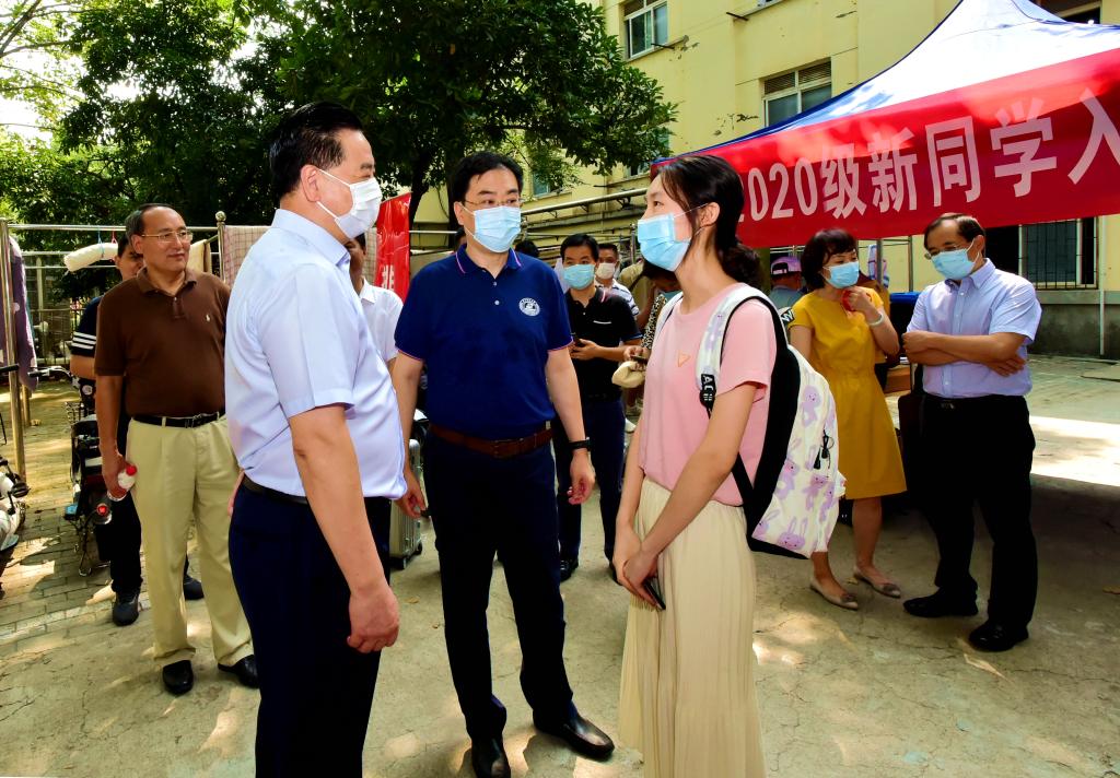 在西五舍门口,beat365两名新生李坪洛和吴敏悦偶遇了正在查看研究生宿舍和新生报到情况的邵新宇书记和李元元校长一行。当邵书记和李校长得知李坪洛是刚刚完成西部计划志愿工作返校读研时,亲切地询问起了他在恩施的工作和生活情况,并主动与李坪洛合影留念;吴敏悦则向两位校领导汇报了自己在硕士阶段做好科研工作的同时,保持体育锻炼并作为羽毛球校队队员,为学校夺取省级比赛前五的经历,邵书记和李校长鼓励她保持状态,在博士阶段的科研工作和体育竞赛中都取得更好的成绩。
