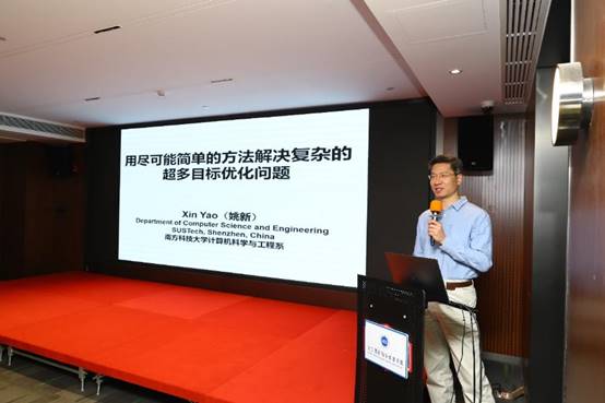 南方科技大学的姚新教授作了题为“用尽可能简单的方法解决复杂的超多目标优化问题”的报告。报告中,姚教授解释了几种处理多个目标的方法。首先,姚教授提出一种将大量目标缩减为少量目标的算法,特别是当不同目标之间存在冗余时此方法尤为重要。然后,引入替代优势关系,使以前不可比较的解决方案具有可比性。最后,姚教授介绍了一种新的优化多目标的算法,通过使用两个单独的档案来实现收敛性和多样性。姚教授提出的多目标优化算法比现有算法的效率和性能更高。姚教授的报告让大家对多目标优化问题有了更深刻的认识,同时也激发了大家的创新思维。