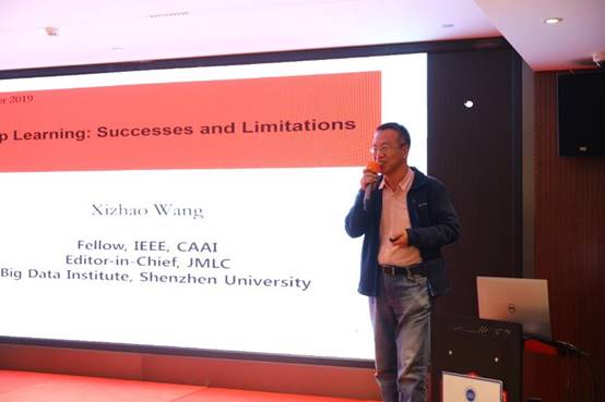深圳大学的王熙照教授作了题为“深度学习的成功与局限性”的报告。报告对近年来的热门话题深度学习模型,从学习偏执的视角做了一个剖析,介绍深度学习在人工智能领域近年来所取得的许多成功案例的同时,强调了深度学习的局限性。指出深度学习不是万能的,它有许多不能解决的问题。认为深度学习成功的深层次原因以及深度学习的理论支撑尚未清楚,有待于进一步探索。报告还简要介绍了王教授课题组近年来关于深度学习探索的一些结果和应用案例。深度学习热度居高不下的今天,王教授的报告呼吁大家要理性看待深度学习,而不是盲目偏信。