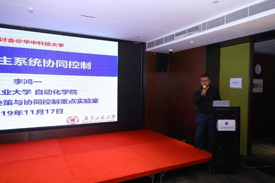 广东工业大学李鸿一教授作了题为“无人自主智能系统协同控制”的报告。报告中,李教授首先介绍了国内外研究学者在多自主系统协同控制理论和应用方面取得的有影响力的成果。然后,介绍了其团队在多智能体系统事件触发协同控制方面一些理论工作,和其团队在无人车系统协同控制方面应用成果。最后,提出多智能体系统协同控制及其应用方面的新挑战问题,并总结本次报告。
