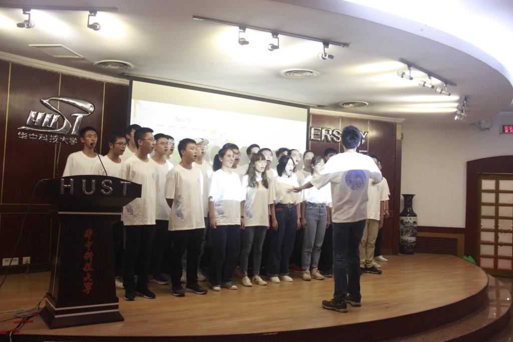 随着团歌伴奏的响起,本次大赛拉开了帷幕。比赛共分为三轮,来自大二、大三年级的27个班级参加了本次比赛。贴脸贴,舞国旗,自动化1703班以一首《我和我的祖国》唱出了对祖国的依恋之情;物流1701班的歌曲《无名之辈》,唱出了向命运、向人生发出不甘的宣言。自动化1804班更是在歌唱《明天会更好》时融入手语表演,表达了他们携手共创美好明天的信念;而测控1802班的同学选择了《大学问》为演唱曲目,展现华中大学子全面发展,接棒时代的红色青年心。