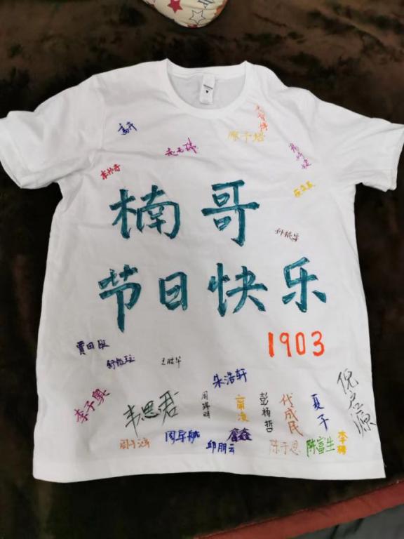 东九课堂,学生们早早来到教室等待任课老师的到来,“起立,老师您辛苦了,节日快乐!”全班同学在班长的带领下齐声为《自动控制原理》课程的授课老师秦肖臻副教授送上整齐的节日祝福。《传感器与检测技术》课堂上,自动化1703班、1704班的同学们也自发在上课前为汪国有教授送上了精心准备了笔记本。自动化1903班全体同学更是创新设计“签名文化衫”赠送给辅导员王泽楠,表达军训期间王导为年级同学辛勤付出的感谢之情。