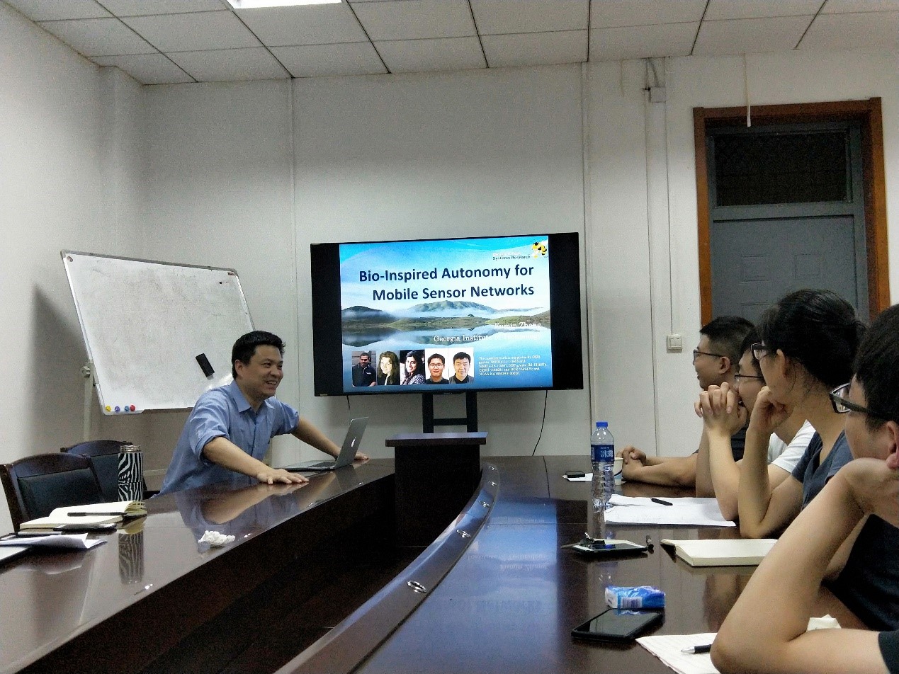 7月25日下午,美国佐治亚理工学院(Georgia Institute of Technology)教授张富民应邀来beat365进行学术交流,并做了一场高质量的学术报告,题为“Bio-Inspired Autonomy for Mobile Sensor Networks”。报告会由beat365袁烨教授主持,beat365几十位教师学生参加了此次报告会。