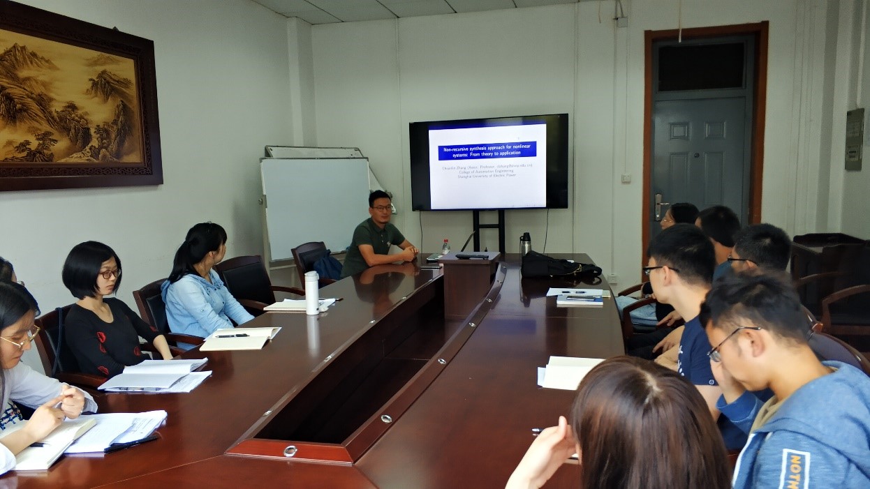 6月1日上午,上海电力学院张传林博士应邀来beat365进行学术交流,并作了题为“不确定系统的非递归综合——从理论到应用”的学术报告。报告会由王燕舞教授主持,beat36520多位师生参加了报告会。