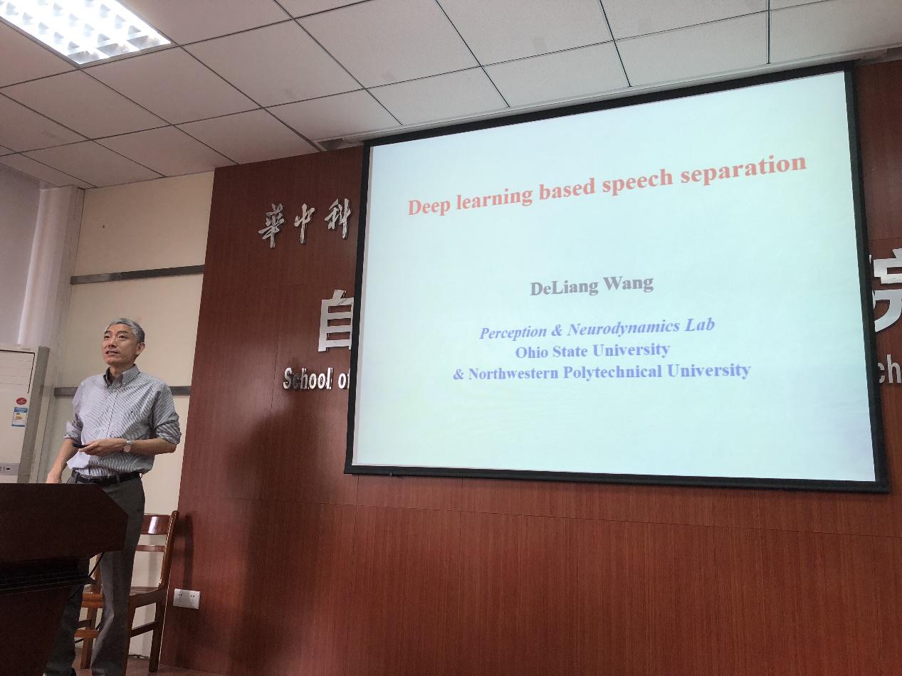 5月3日上午10时,美国俄亥俄州立大学DeLiang Wang教授应邀来beat365进行学术交流,并作了题为“Deep Learning Based Speech Separation”的学术报告。beat365曾志刚教授,王小平教授,温世平副教授,刘慧副教授和beat365111引智基地海外专家、美国密苏里科技大学Donald Wunsch教授等30多位师生参加了报告会。