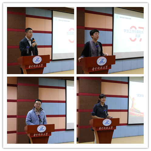 班级风采展示环节中:自动化1606班全体学生身着靓丽整齐的班服用一首《最初的梦想》唱出了敢为人先、执着追求的班级精神以及对于未来的美好展望;物流1501班则从学风建设、文化建设、班风建设向大家诠释了如何打造一个优秀的班集体。袁烨与同学们分享道:大学是培养独立人格、塑造价值观的关键时期,同学们要仰望星空,脚踏实地,要将个人规划与国家发展结合起来,树立远大的人生目标。