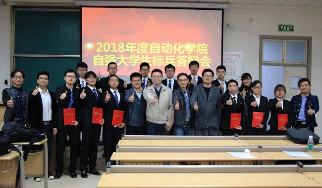 最终孙文静、谢旭东、金雪晴、黎瑞、向璇渝、王果六位同学获得“自动化学院自强标兵”荣誉称号;胡少松、刘刚、李显锐、丁锐林、黄昱恺、谭梓航六位同学获得 “自动化学院自强之星” 荣誉称号。