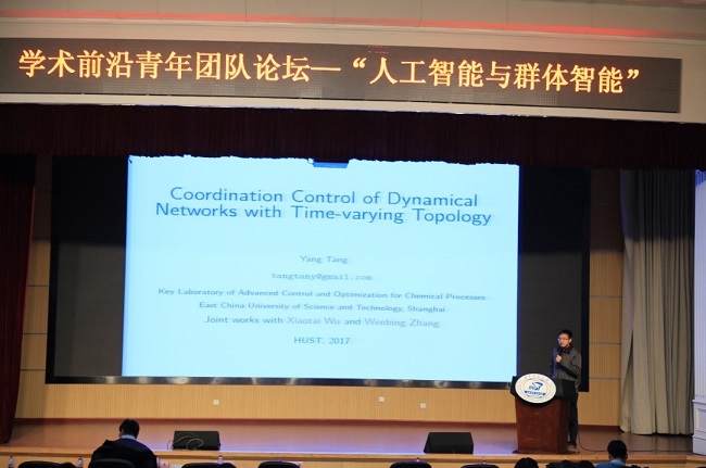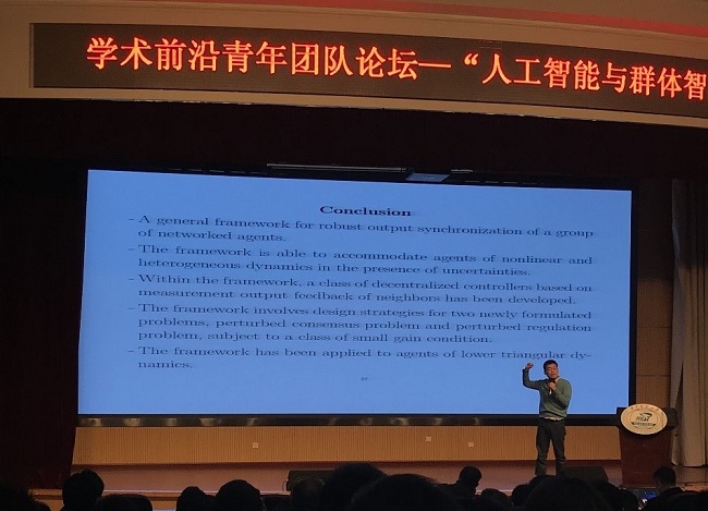 澳大利亚纽卡斯尔大学陈智勇教授做了题为“非线性控制的一些理论及其在群体智能中的应用”的报告,介绍了非线性控制的基本思想与工具,包括其在群集智能领域中的应用案例。