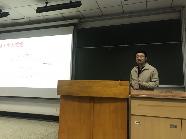 来自本科2017级的四位同学在“翻转团课”中就入学三个月的成长与收获与在座师生进行了分享。余盟同学为大家分享了在大创工作学习和作为班长的感受体会;蔡哲豪同学为我们讲述了他在电工基地的所见所学所感;章佳敏同学则给我们分享了她在公益活动中的收获与感触;而付琦峰同学则分享了他进入大学之后的感触“要多与老师同学学长学姐交流,这样才能更好融入大学生活。”