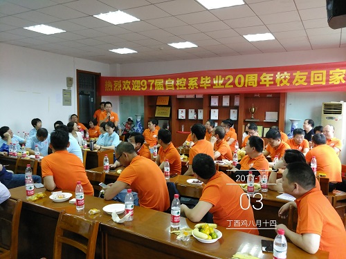 10月5日至7日,本科97级相识20周年返校聚会活动在校举行。6日上午,院长曹治国、原自控系系主任孙德宝、原自控系副书记毛永卫、学院何顶新、陈曦、戴鄂东等教师与70多位校友共同举行了别开生面的师生座谈会。辅导员点名、师生互动、同学感言让现场气氛不断升温。四位远在西藏、香港、新加坡、日本未能前来参加的同学,也传来视频问候,最后的纪念视频中的老照片让大家都陷入深深地回忆中。重温一次食堂、重返一次宿舍教室、重来一场球赛让大家都尽情享受曾经的大学生活,带着家人和同学一起漫步东湖绿道让大家更加珍惜这历久弥新的同窗情谊。