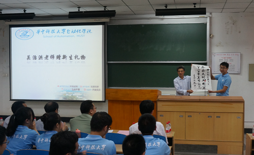 院学位委员会主任关治洪教授为新生准备了一份“开学礼”,他把自己的书法作品“华科大树大林深,宇宙梦美梦成真”赠与2017级全体研究生。关老师解释到:beat365唯一官网树木茂盛,为学生提供了良好的生活环境;学校师资力量雄厚,每位老师在自己的研究领域也是“大树”,为学生指引着前进的方向;科学研究是不断探索宇宙,接近真理的过程,学院研究方向从纳米成像、基因检测到航空航天,贯穿宇宙,希望同学们在科研道路上尽情遨游,实现自己的科研梦想。
