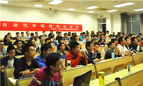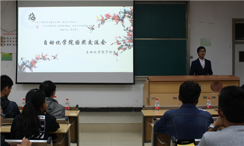 交流会开始后,几位获得国家奖学金的学生代表依次上台分享了自己的学习生活经验,畅谈自己对大学生活的感悟。已经获得了3所世界名校的录取通知的自动化1301班李元齐,集段子手与学霸的身份于一身,发言幽默风趣,赢得笑声掌声连连;连续三年加权专业第一的测控1301班刘宇真,暑假刚刚获得“西门子杯”中国智能制造挑战赛特等奖,学习、科研、竞赛、学生工作各有涉猎,表现优异;接下来,还有物流1301班的坚韧学姐赵雪芳,奋起直追、后来居上的自动化1401班胡鹏超、 “热爱生活的学霸”物流1401班熊昕以及热爱义工服务的自动化14级实验班王皓文同学都分享了各自的学习感悟。