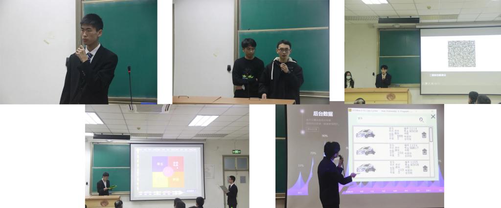 麻连杰、郑海川组流畅运行功能强大的哔哩哔哩网站功能模拟,引得大家惊叹连连;钟超、聂渡骏组妙趣横生的语言,完善的需求分析,让无人驾驶汽车中控仪表系统模拟给人深刻印象;辛亿、肖师杰组的防疫行程卡及健康码模拟管理设计算法生成二维码,扫码显示的“祝C课设顺利”融入了对学弟学妹满满的祝福……