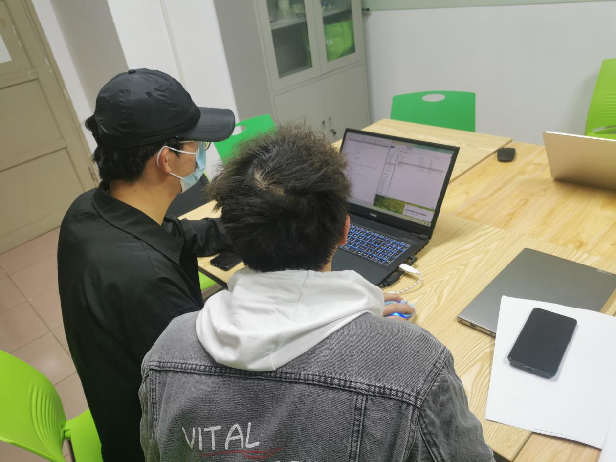 读程序,debug,写程序,这些都是在120和3楼公房帮扶的日常。预备党员刘忆思所帮扶的李稻略和吴永康小组,他们所选择的课题是某区域交通智能图形仿真系统。在帮扶前,他们只完成了界面的绘制,关于程序功能是基本没有开始的,这种进度在验收前半个月非常危险。在进行了一周的辅导后,他们已经能够分别实现红绿灯和小车的顺利运行,但是两者一同运行便出现了极其严重的bug。在认真读了代码之后,刘忆思给出了他的建议:“因为C语言只能进行单线程,但是你这个要做多线程,所以你小车和红绿灯不能一块运行,只能做伪多线程,但是你现在的程序框架是不能做到的,我建议你舍弃现在的程序框架,这样搭建你的程序框架……”