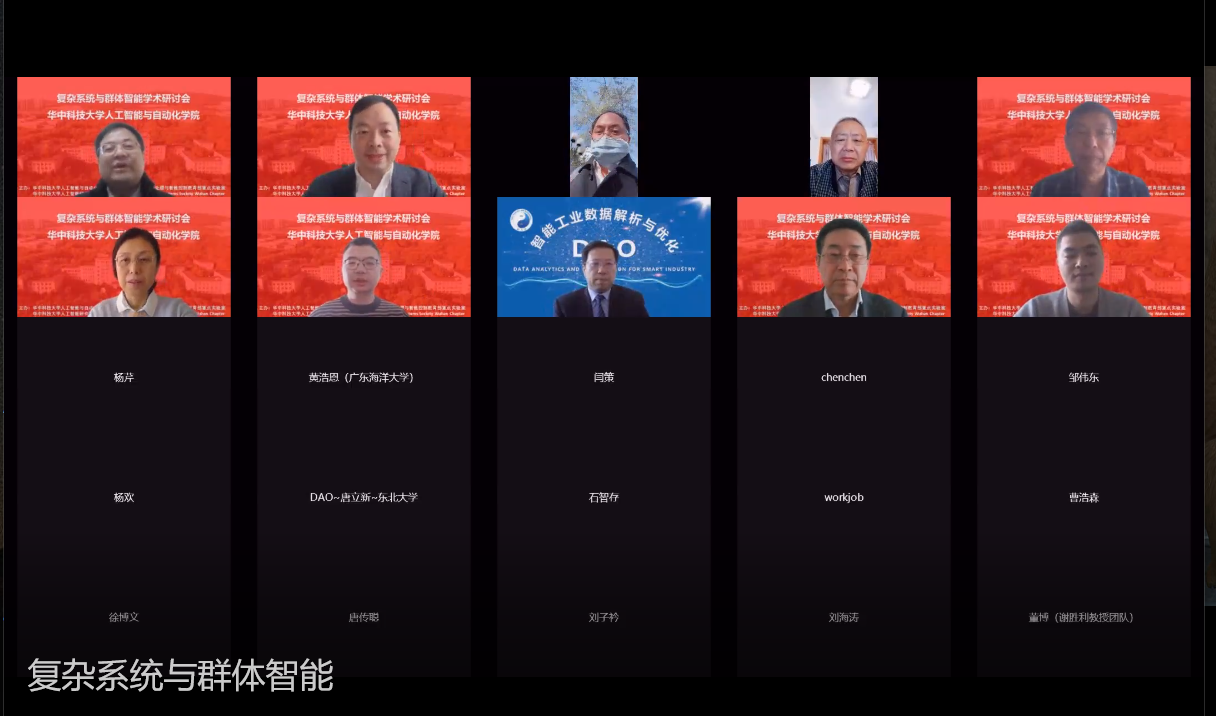 东北大学副校长唐立新院士、北京交通大学计算机与信息技术学院院长蔡伯根教授、北京理工大学自动化学院院长夏元清教授、广东工业大学谢胜利教授、同济大学乔非教授、北京师范大学狄增如教授出席会议,并做精彩报告,深入探讨复杂系统与群体智能的前沿科学问题和技术挑战,讨论过去和未来该领域的发展重点和方向。按照疫情防控的要求,此次研讨会采用线上会议行式召开,近300名师生参加会议。