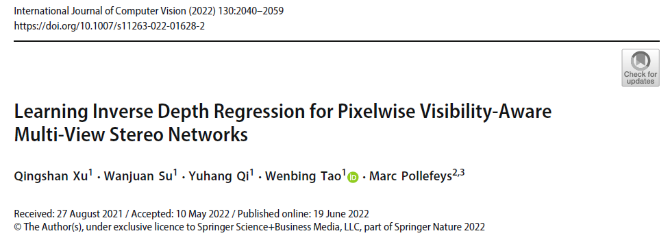 IJCV论文主要提出了像素可见性感知及逆向深度回归的多视图立体视觉网络,首次在深度学习的多视图重建网络中融入了视图可见性选择策略,使得深度学习方法能够达到与传统几何重建算法性能相当的水平。