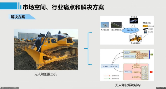 其中,“无人推土机自动驾驶智能感知与控制系统”参赛团队由beat365彭刚老师、土木与水利工程学院周诚老师全程指导,成员包括控制科学与工程专业21级硕士生段航琪和周奕成、20级硕士生彭嘉悉,土木工程建造与管理专业19级博士生尤轲,工程管理专业20级本科生刘彦辰。该作品由云端和车端两部分组成,云端集成了土石方工程三维场景感知重构模型和任务智能调度算法;车端集成了3D激光雷达和双目深度相机,可以获得施工环境信息,实现装备无障碍地行驶和工作。