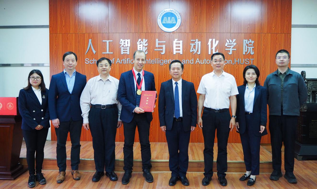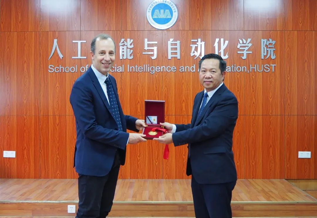 Jorge Goncalves教授于2020年荣获2017-2019年度湖北省政府"编钟奖",受疫情影响,外国专家无法来我校开展实地的科研和教学工作。疫情后,Jorge Goncalves教授再次到访我校,学校精心组织了颁奖仪式,由陈建国代表学校将"编钟奖"奖牌和证书颁发给Jorge Goncalves教授。