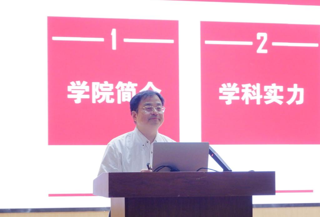 曾志刚院长从学院基本情况、学院实力、教学教育等方面为同学们作了细致的讲解。他细致地介绍了学院五十年的发展历程,以及学院在科研上的多方成就、在教学教育上的深耕细作。他指出,学院将在新时代党旗领航工程指引下,把人才培养质量实实在在提起来,希望同学们主动明确研究目标、做好个人规划、敢于竞争、锤炼品德修为,追求卓越,努力成为新时代的栋梁之才!