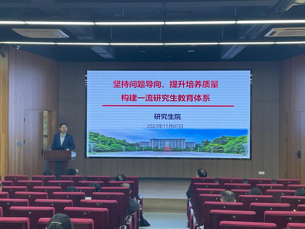 研究生院院长朱锦涛为学院全体在职员工做了题为《坚持问题导向,提升培养质量——构建一流研究生教育体系》的主题培训。他从研究生教育体系统筹规划建设、研究生课程体系建设、教材建设、导师队伍建设等方面详细介绍了学校构建一六研究生教育体系的系列举措。他同时从学校和院系层面详细剖析了目前研究生招生以及培养等方面存在的差距和不足,并在课程建设、产教融合、论文评审、培养过程管理与分流淘汰机制等方面提出了宝贵建议。