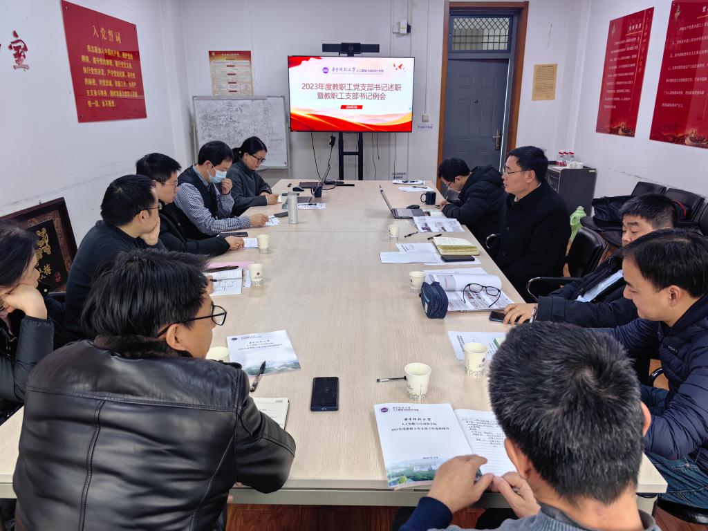 述职结束后,耿远明进行总结发言并组织召开支部书记例会。他表示2023年各党支部都做了大量工作,取得了不少可喜的成绩,谨代表学院党委向全体支部书记的辛苦付出表示感谢。随后,他也对新一年支部的工作提出了新要求,他希望各支部要及时总结特色做法,抓实推进开展我为群众办实事活动,与其他学院进行联学共建,互促互学,要抓好党员发展工作,保证教师党员发展的延续性,要做好宣传报道,讲好支部故事,展现党员教师风采。